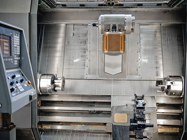 Unser Favorit im Bereich Drehen ist die Index G250 Ratioline mit 5-Achsen-Simultan-Bearbeitung mit einer Frässpindel, einem Revolver und zwei Arbeitsspindeln.
